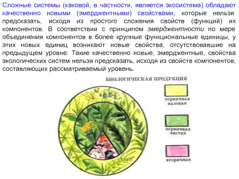 Слайд 71Сложные системы (каковой, в частности, является экосистема) обладают качественно новыми