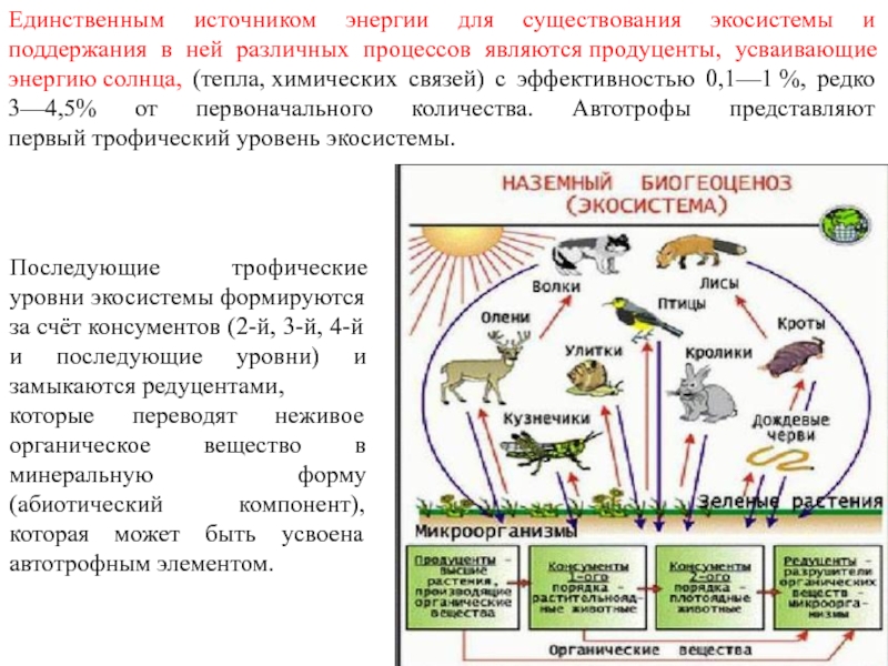 Слайд 6Единственным источником энергии для существования экосистемы и поддержания в ней