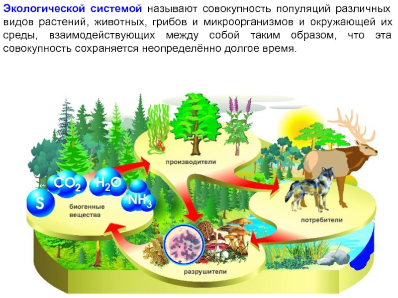 Слайд 3Экологической системой называют совокупность популяций различных видов растений, животных, грибов
