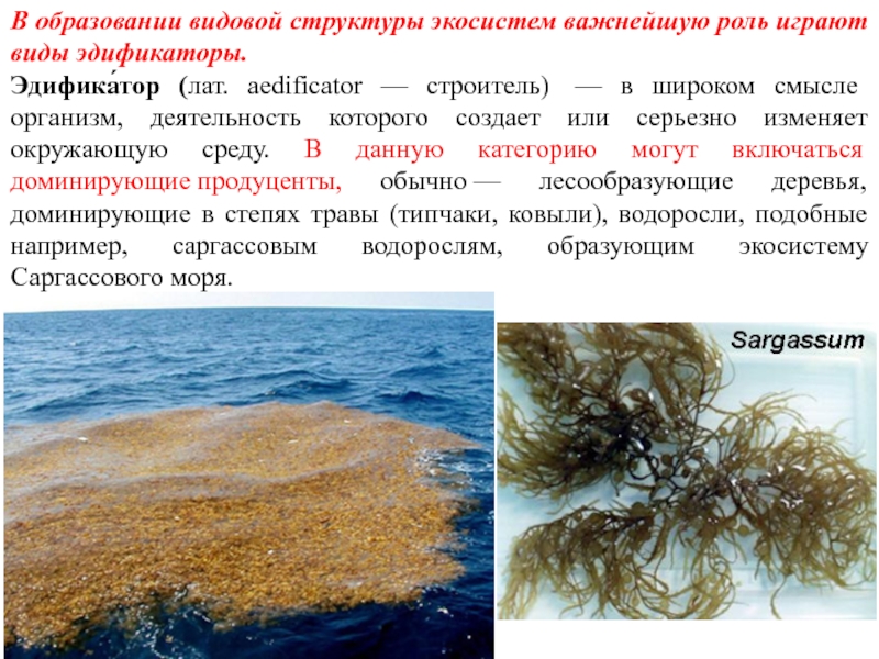 Слайд 17В образовании видовой структуры экосистем важнейшую роль играют виды эдификаторы.