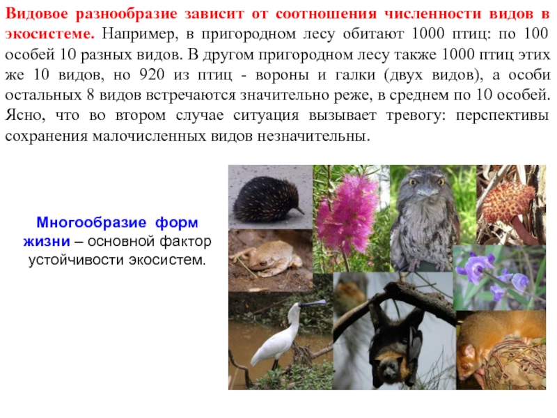 Многообразие форм жизни – основной фактор устойчивости экосистем.