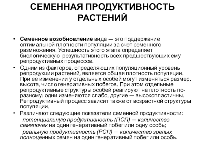 Слайд 9СЕМЕННАЯ ПРОДУКТИВНОСТЬ РАСТЕНИЙ