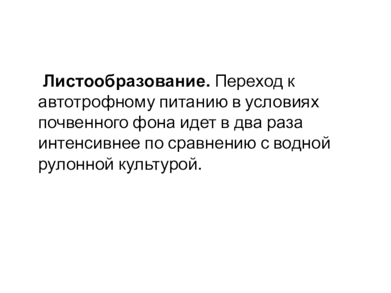 Слайд 18 Листообразование. Переход к автотрофному питанию в условиях почвенного фона идет