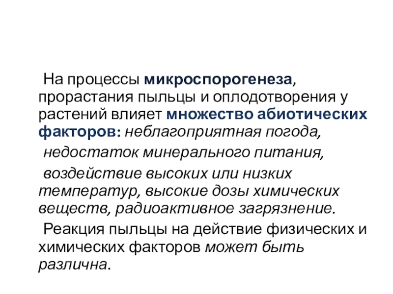 Слайд 4 На процессы микроспорогенеза, прорастания пыльцы и оплодотворения у растений влияет
