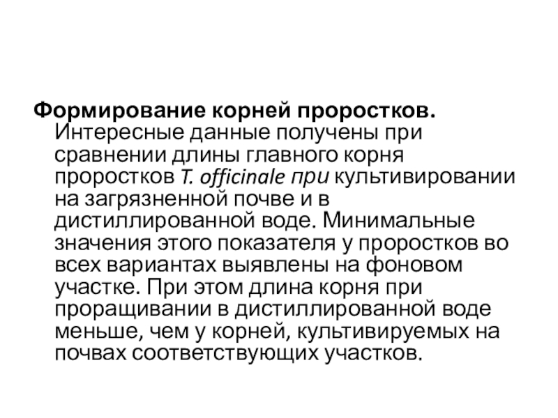 Слайд 16Формирование корней проростков. Интересные данные получены при сравнении длины главного