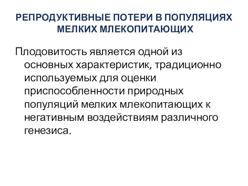 Слайд 19РЕПРОДУКТИВНЫЕ ПОТЕРИ В ПОПУЛЯЦИЯХ