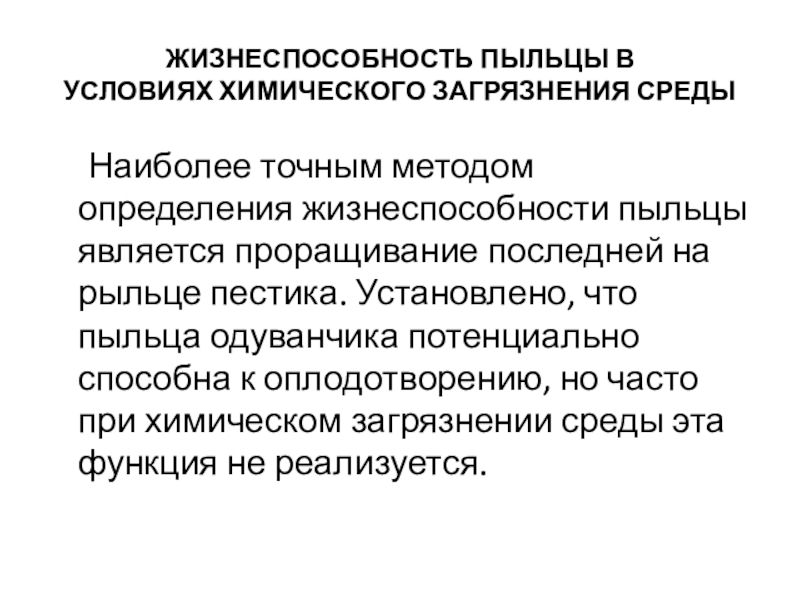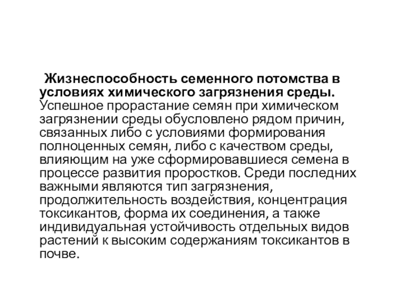 Слайд 15 Жизнеспособность семенного потомства в условиях химического загрязнения среды. Успешное прорастание