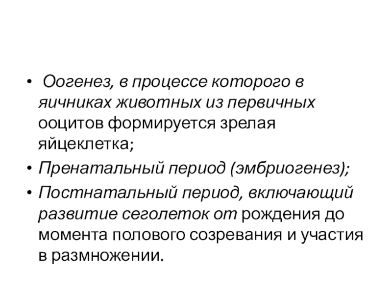 Слайд 20 Оогенез, в процессе которого в яичниках животных из первичных
