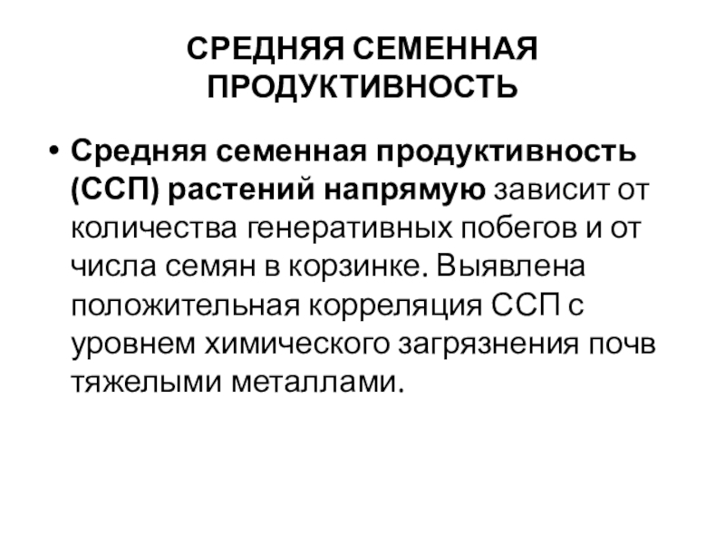 Слайд 12СРЕДНЯЯ СЕМЕННАЯ ПРОДУКТИВНОСТЬ