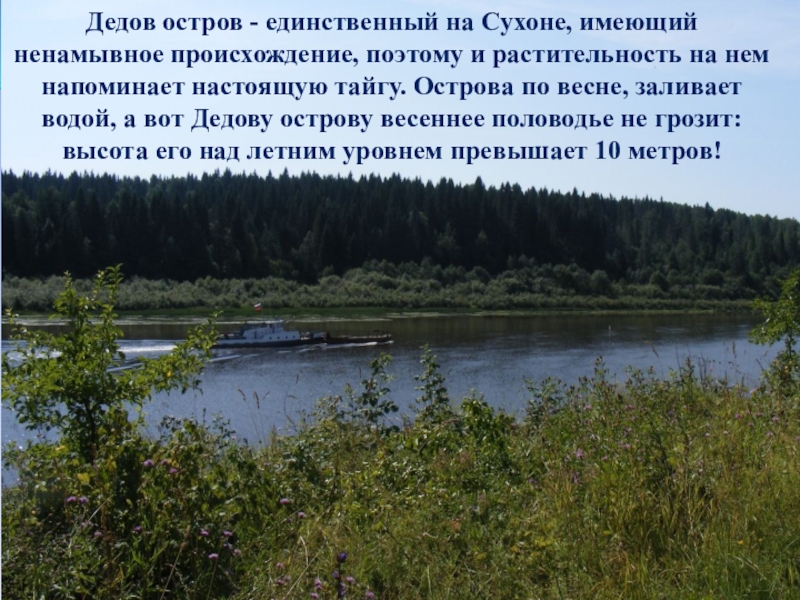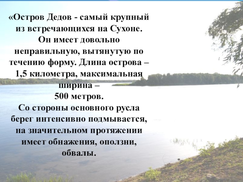 Слайд 4«Остров Дедов - самый крупный из встречающихся на Сухоне. Он