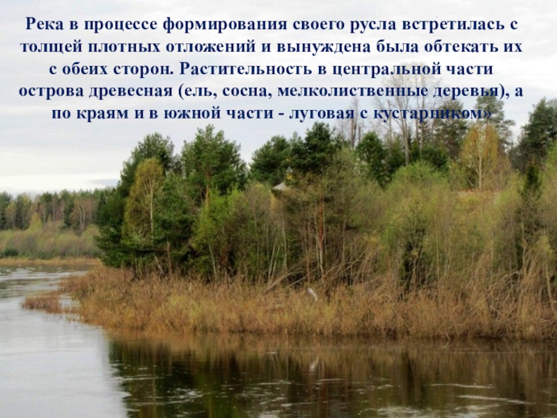отложений и вынуждена была обтекать их с обеих сторон. Растительность