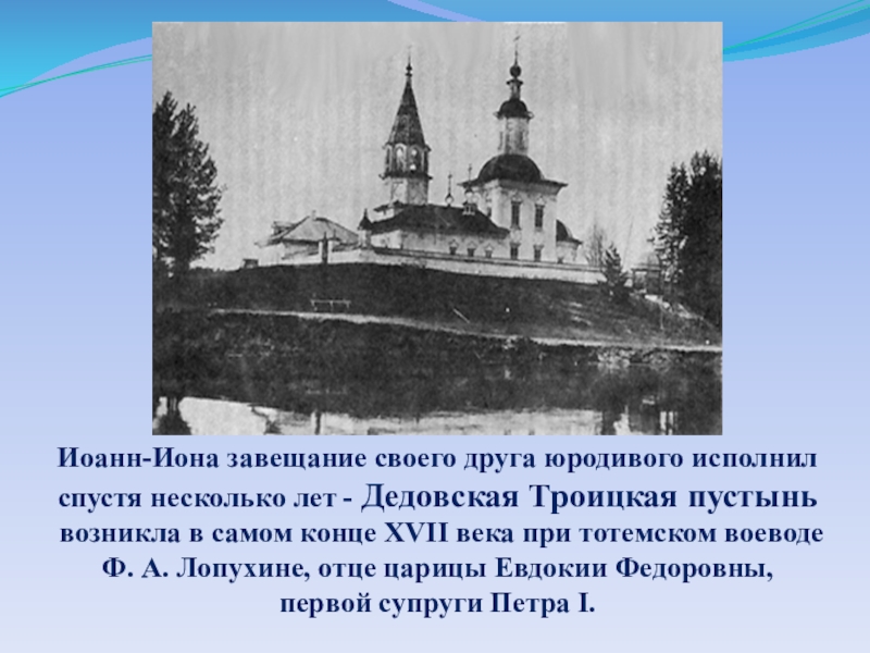 Слайд 11Иоанн-Иона завещание своего друга юродивого исполнил спустя несколько лет -
