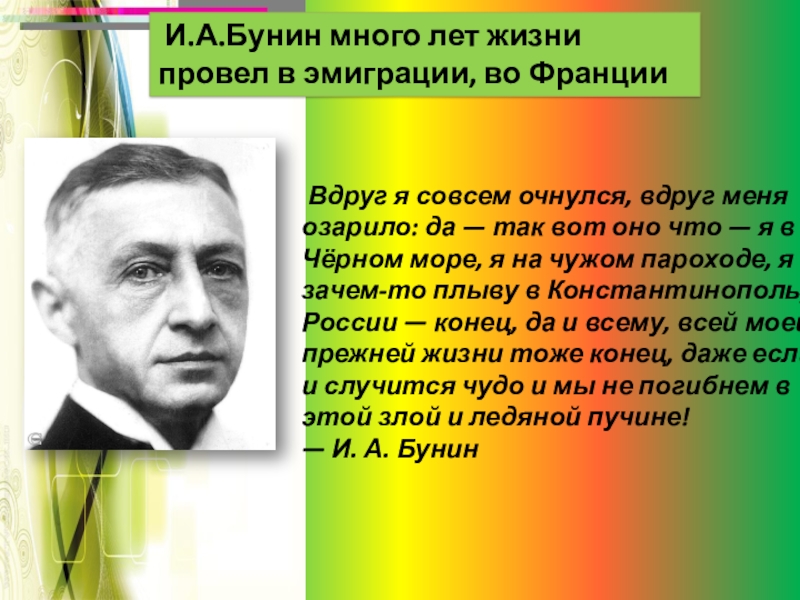 И.А.Бунин много лет жизни провел в эмиграции, во Франции