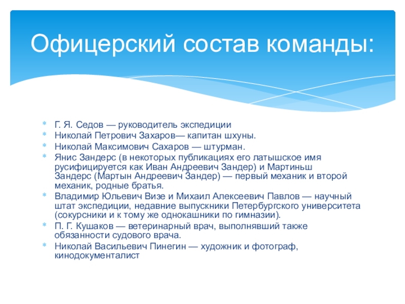 Офицерский состав команды: