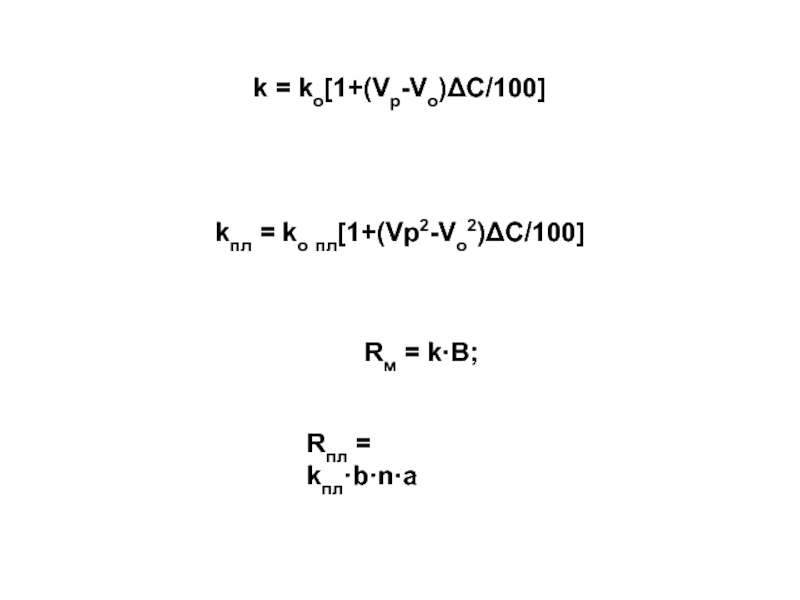 kпл = kо пл[1+(Vр2-Vо2)ΔС/100]