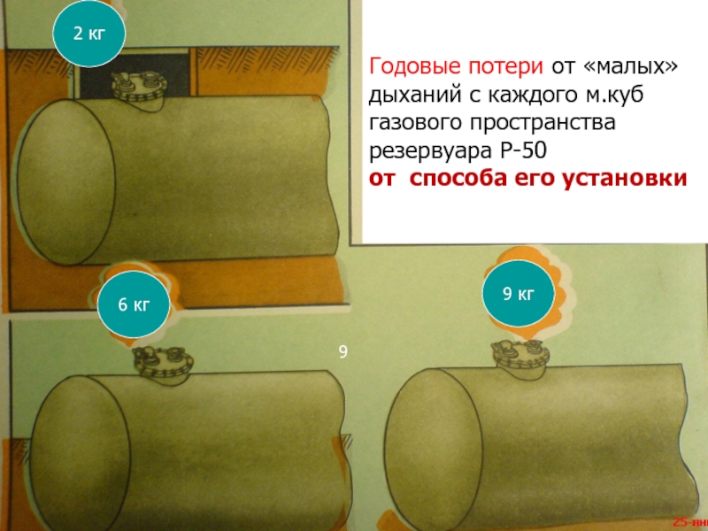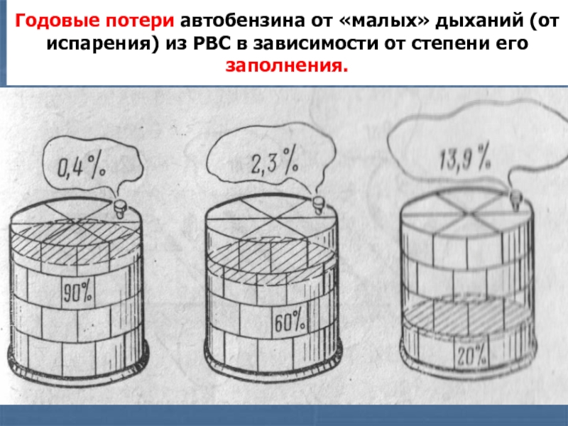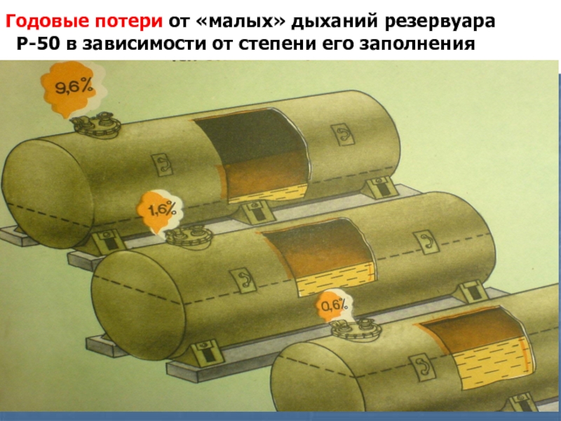 Слайд 27Годовые потери от «малых» дыханий резервуара
