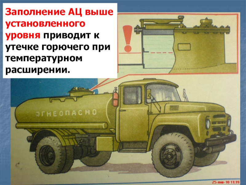 Слайд 33Заполнение АЦ выше установленного уровня приводит к утечке горючего при