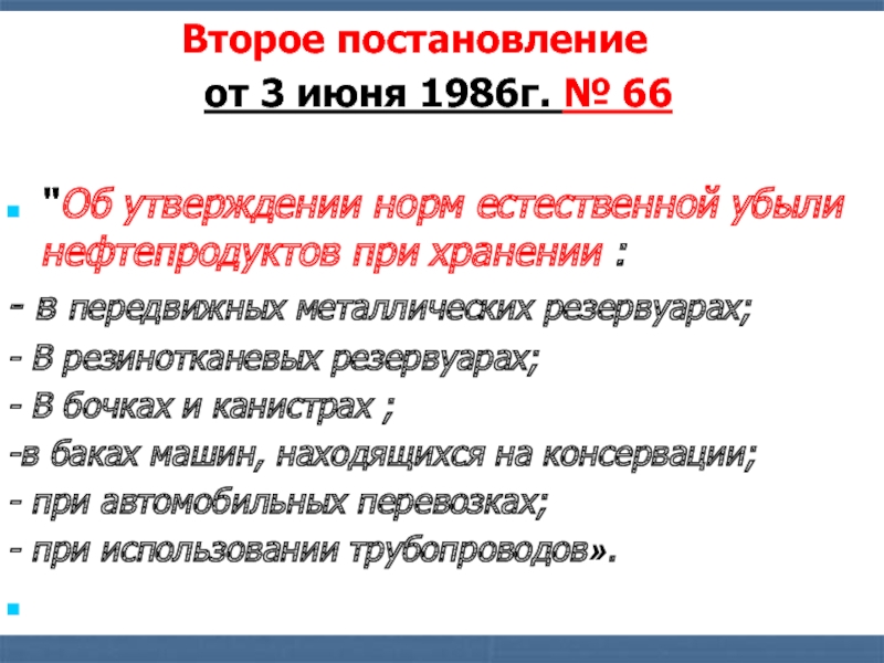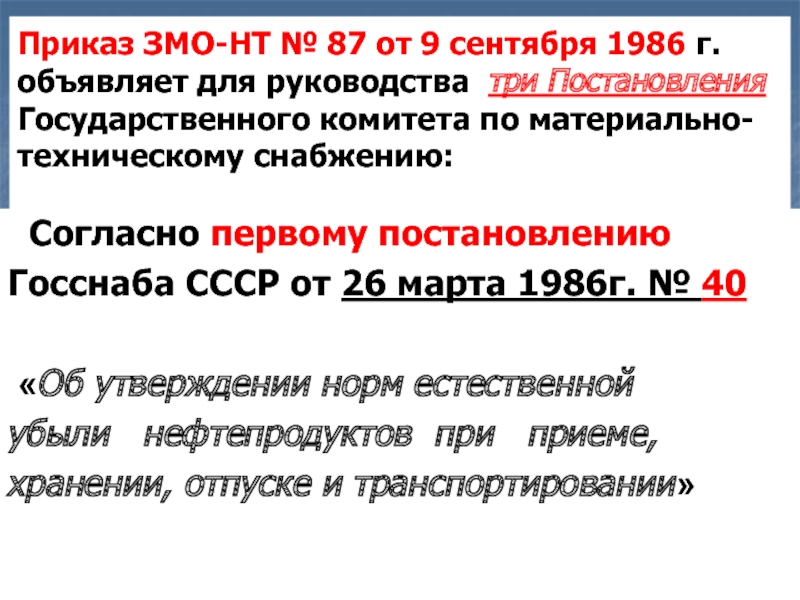 1. Приказ ЗМО-НТ № 87 от 9.9.1986г. «О нормах естественной