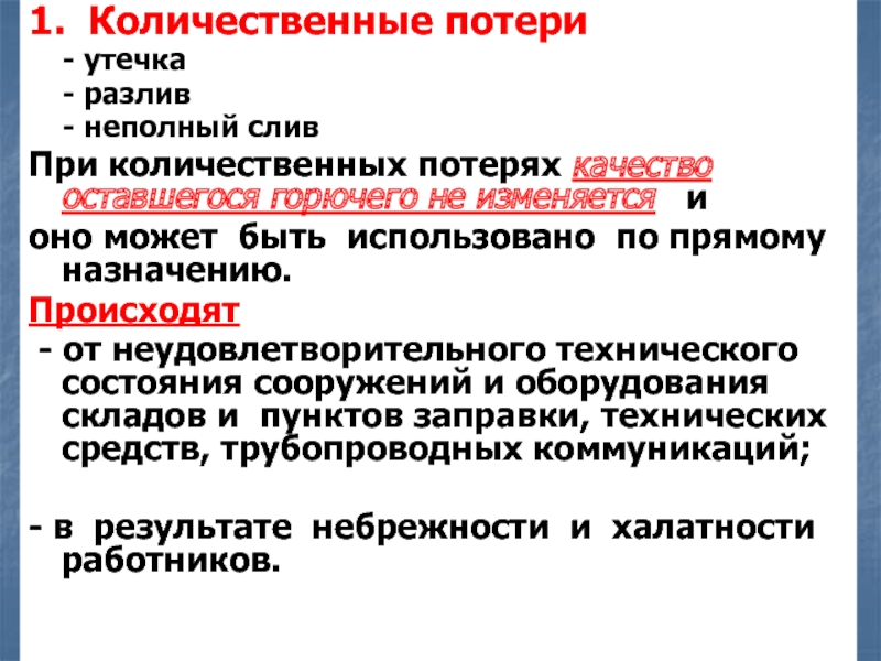 Слайд 91. Количественные потери