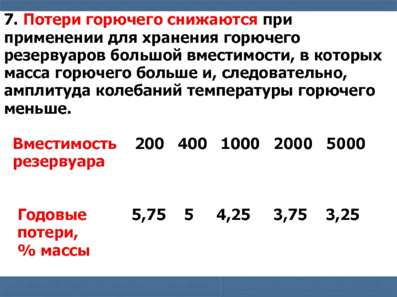 Слайд 257. Потери горючего снижаются при