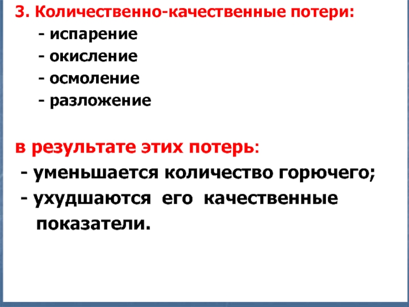 Слайд 113. Количественно-качественные потери: