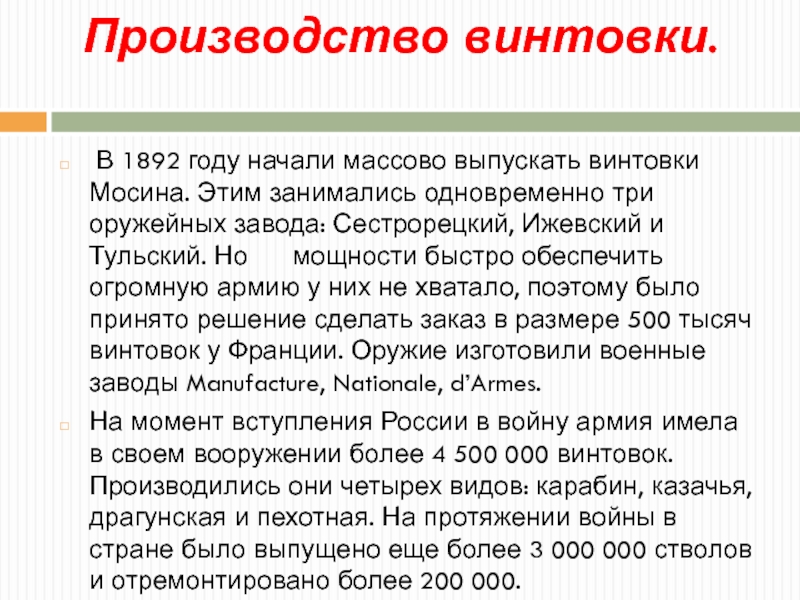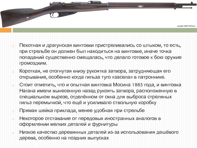 1. Образец 1891 года - винтовка Мосина, характеристики которой следующие: