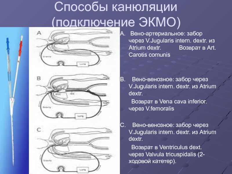 Слайд 22Способы канюляции (подключение ЭКМО)