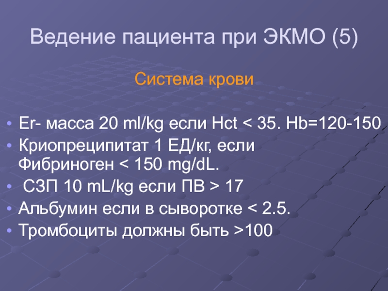 Слайд 34Ведение пациента при ЭКМО (5)