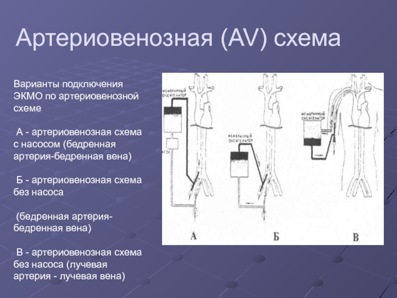 Варианты подключения ЭКМО по артериовенозной схеме