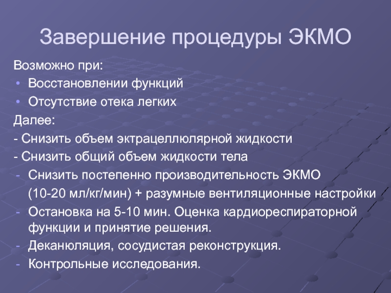 Слайд 37Завершение процедуры ЭКМО