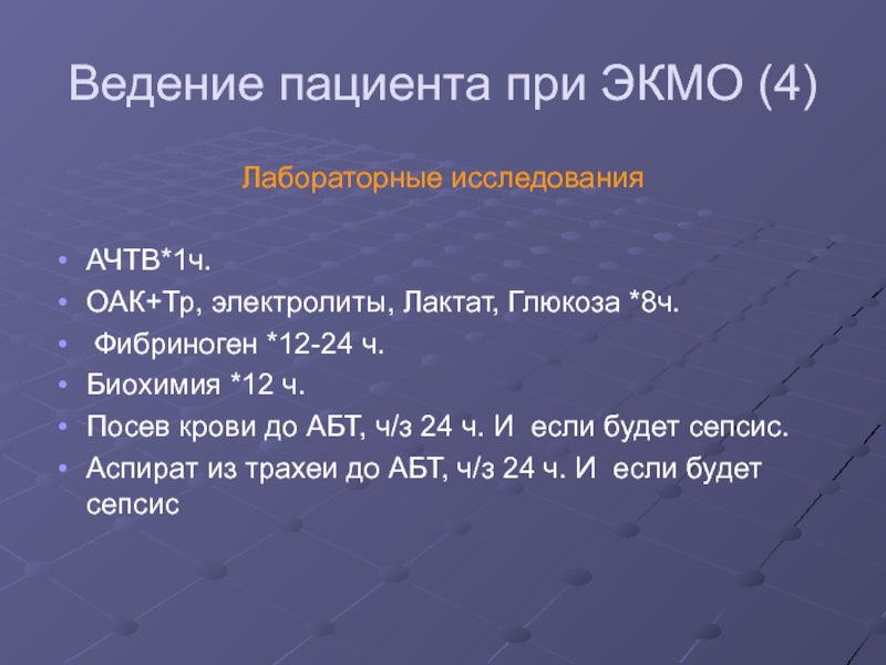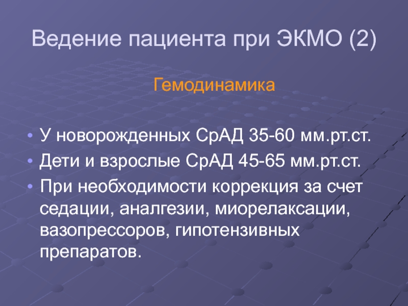 Слайд 33Ведение пациента при ЭКМО (4)