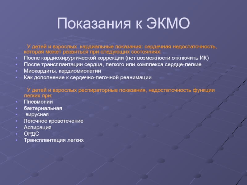 Слайд 19Показания к ЭКМО