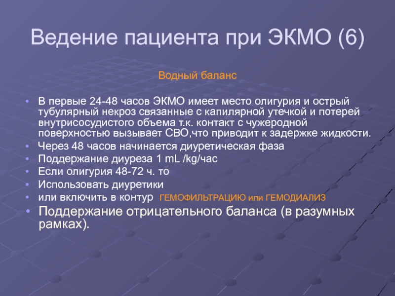 Слайд 36Ведение пациента при ЭКМО (6)