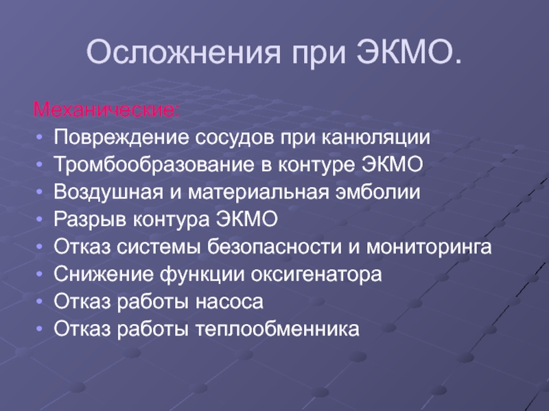 Слайд 40Осложнения при ЭКМО.