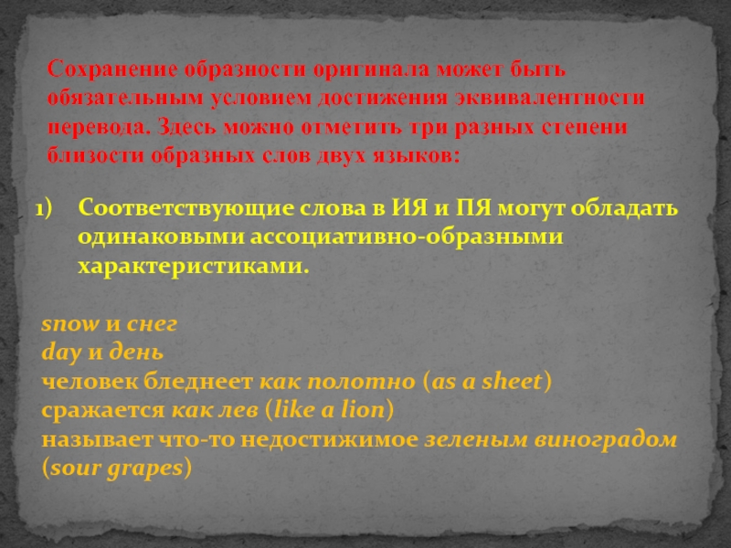 Соответствующие слова в ИЯ и ПЯ могут обладать одинаковыми ассоциативно-образными характеристиками.