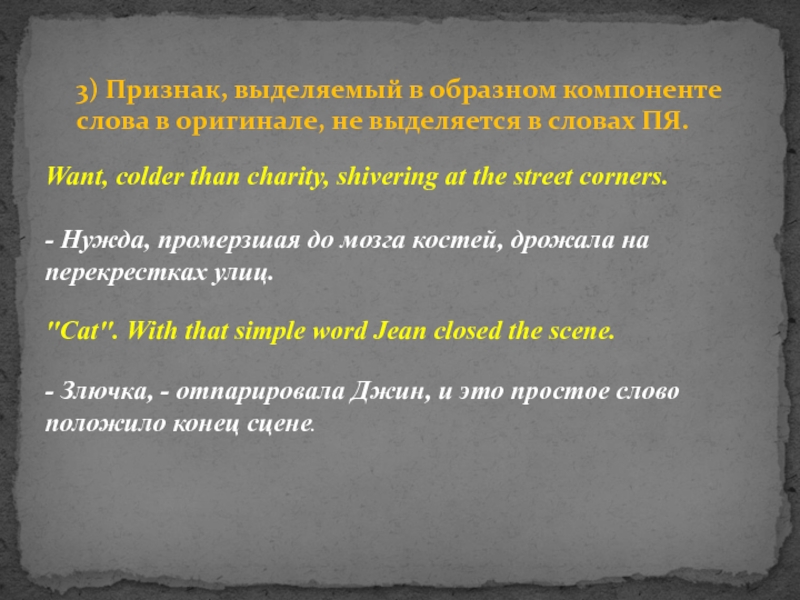 2) Соответствующей ассоциативно-образной характеристикой обладают разные слова, в оригинале и переводе не являющиеся эквивалентами друг другу.