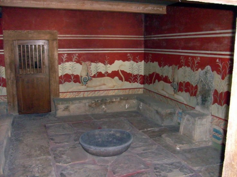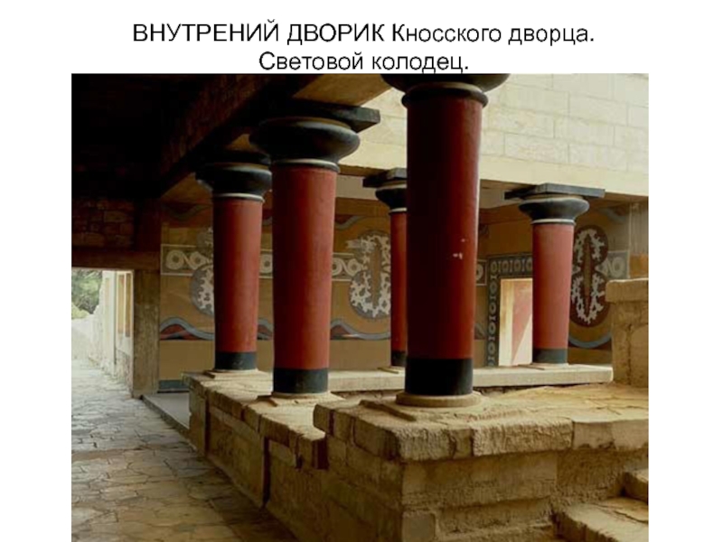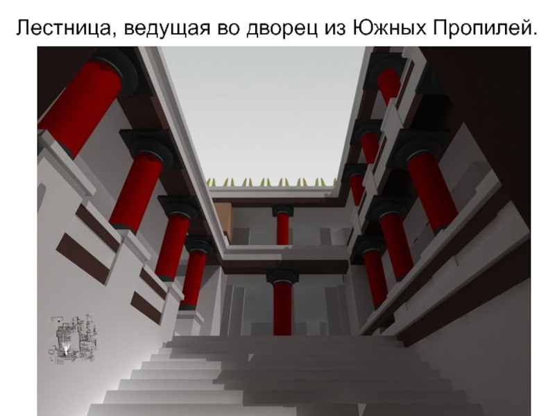 За пилоном открывался прямоугольный в плане открытый двор, обнесенный колоннами (перистильный зал).