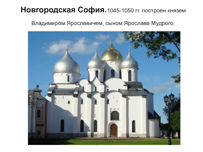 Слайд 136Новгородская София.1045-1050 гг. построен князем Владимиром Ярославичем, сыном Ярослава Мудрого.