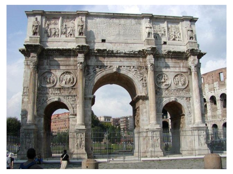Колоссальные статуи, поставленные внутри и вне здания, отмечены ростом реалистических тенденций в скульптуре (живописи).