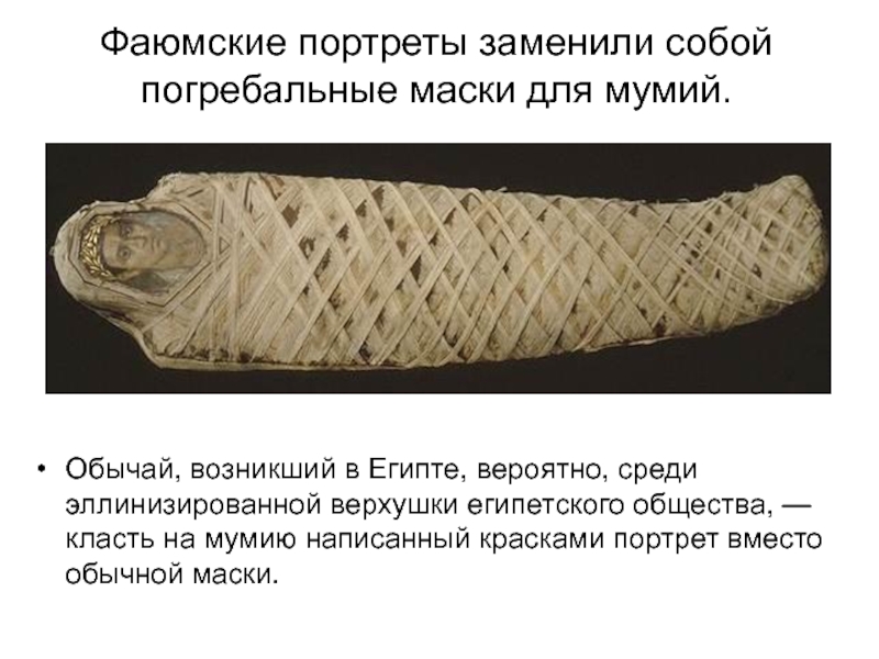 Фаюмские портреты заменили собой погребальные маски для мумий.