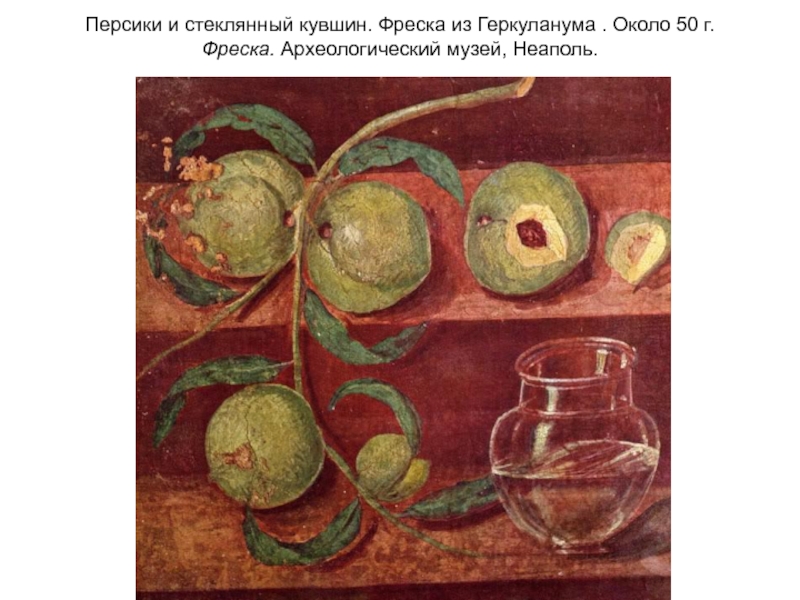 Слайд 114Персики и стеклянный кувшин. Фреска из Геркуланума . Около 50
