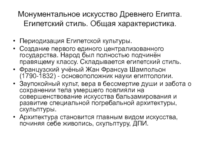 Слайд 2Монументальное искусство Древнего Египта. Египетский стиль. Общая характеристика.