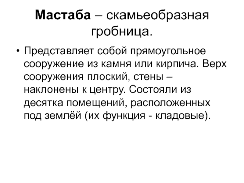Мастаба – скамьеобразная гробница (облик сформировался концу Раннего