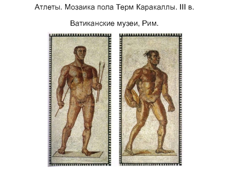 Слайд 121Атлеты. Мозаика пола Терм Каракаллы. III в. Ватиканские музеи, Рим.