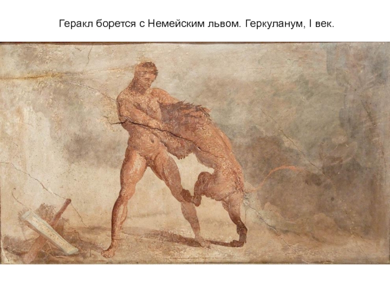 Слайд 116Геракл борется с Немейским львом. Геркуланум, I век.