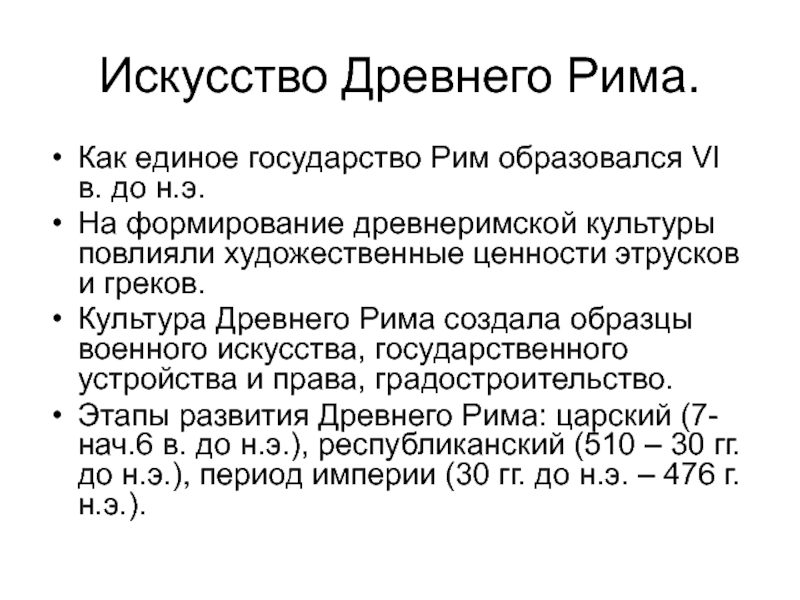 Архитектура становится главным видом искусства, починяя себе живопись, скульптуру, ДПИ.