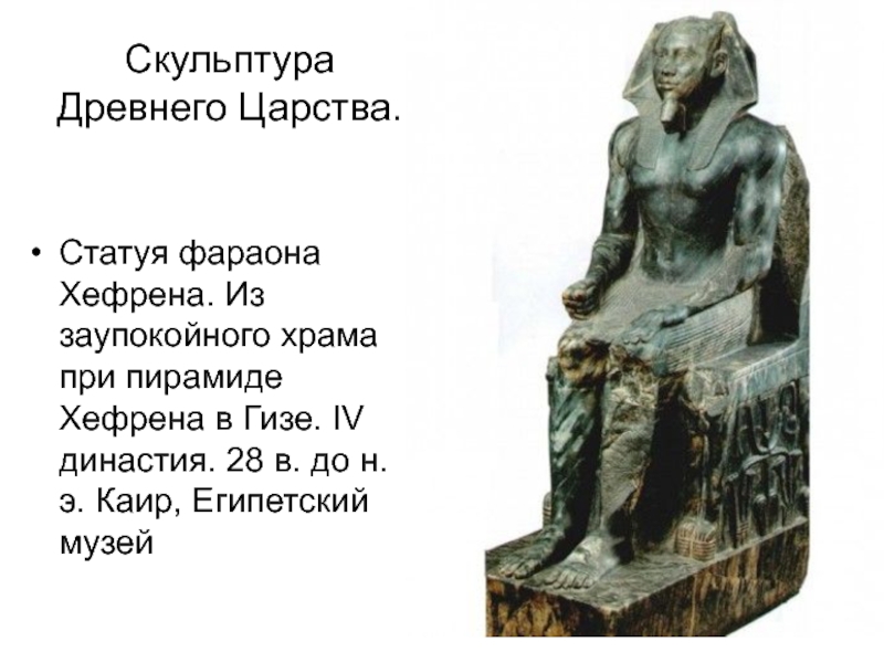 Хефрена в Гизе. IV династия. 28 в. до н.э. Каир,