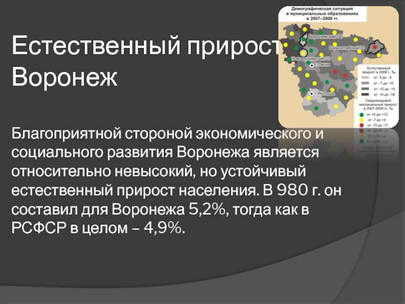 Характерной чертой демографического развития Воронежа является быстрый рост численности