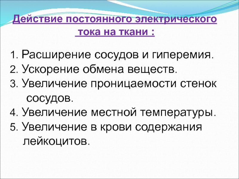 Токи НЧ оказывают раздражающее (стимулирующее) действие,