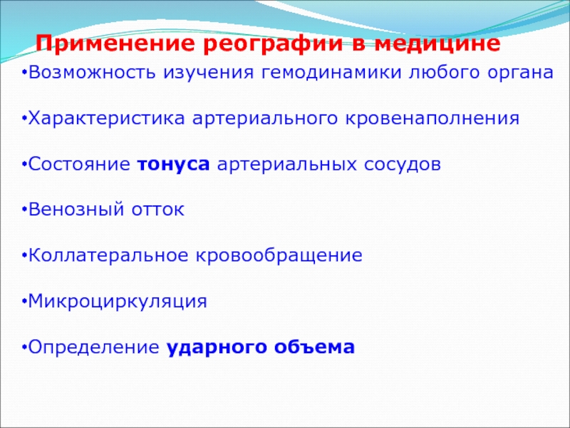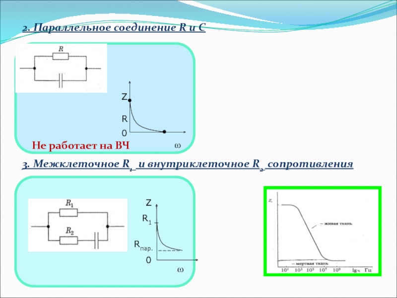 Применение переменного тока высокой частоты до 500 кГц дает возможность выделить из общего сопротивления = импеданса переменный компонент, малый по величине(1%) , связанный с пульсовыми колебаниями кровенаполнения.